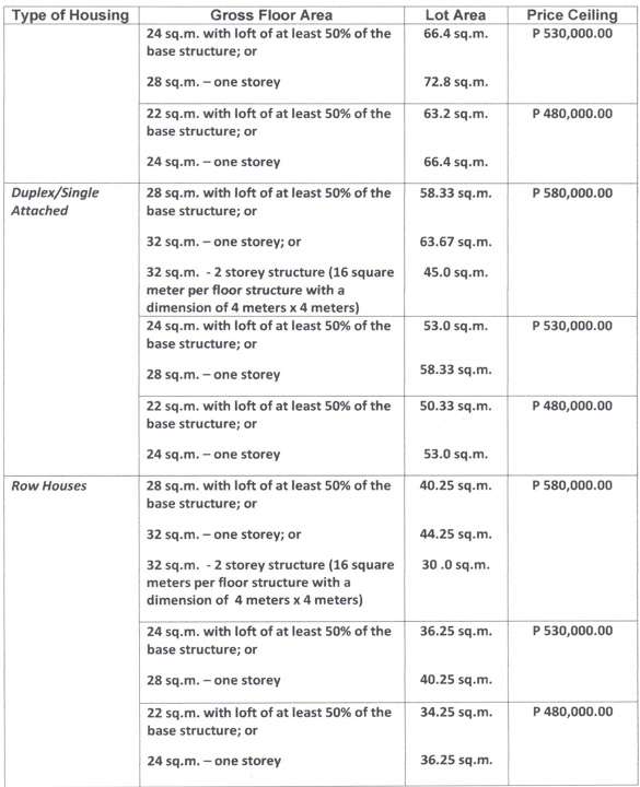 | PROJECT SIZE RANGE (has) | ECONOMIC HOUSING HOUSING | SOCIALIZED HOUSING |