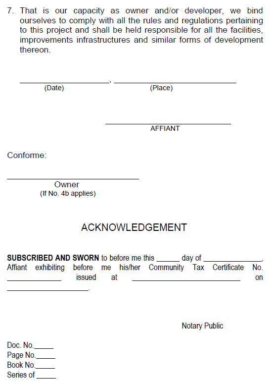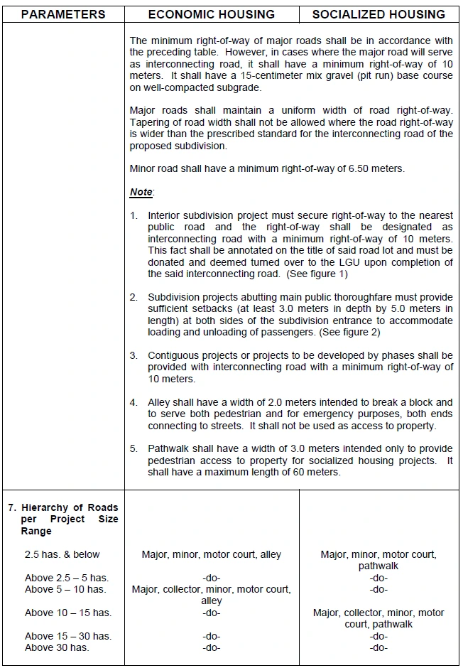 - For projects abutting national roads (primary roads) adequate easement shall be provided for road including loading and unloading as may be required by national/local government units.
