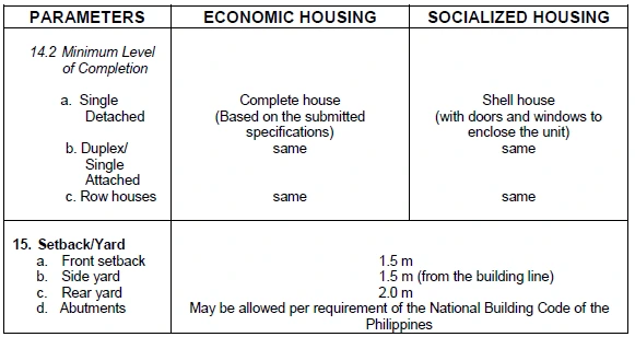 Pursuant to Section 3 of BP 220, the Housing and Land Use Regulatory Board is authorized to establish and promulgate two levels of standards and technical requirements for the development of economic and socialized housing projects/units in urban and rural areas from those provided in PD 957, PD 1216, PD 1096, and PD 1185, hence the following rules are hereby promulgated.