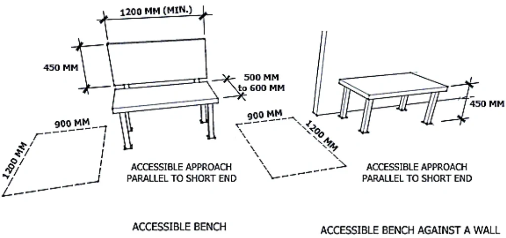 3. The provision of adequate space for wheelchair maneuvering generally ensures adequate space for persons with disabilities equipped with other technical aids or accompanied by assistants. In determining the minimum dimensions for furniture and fixtures accessible to persons with disabilities, the following anthropometric data shall serve as guides for design (See Isolation Mode):