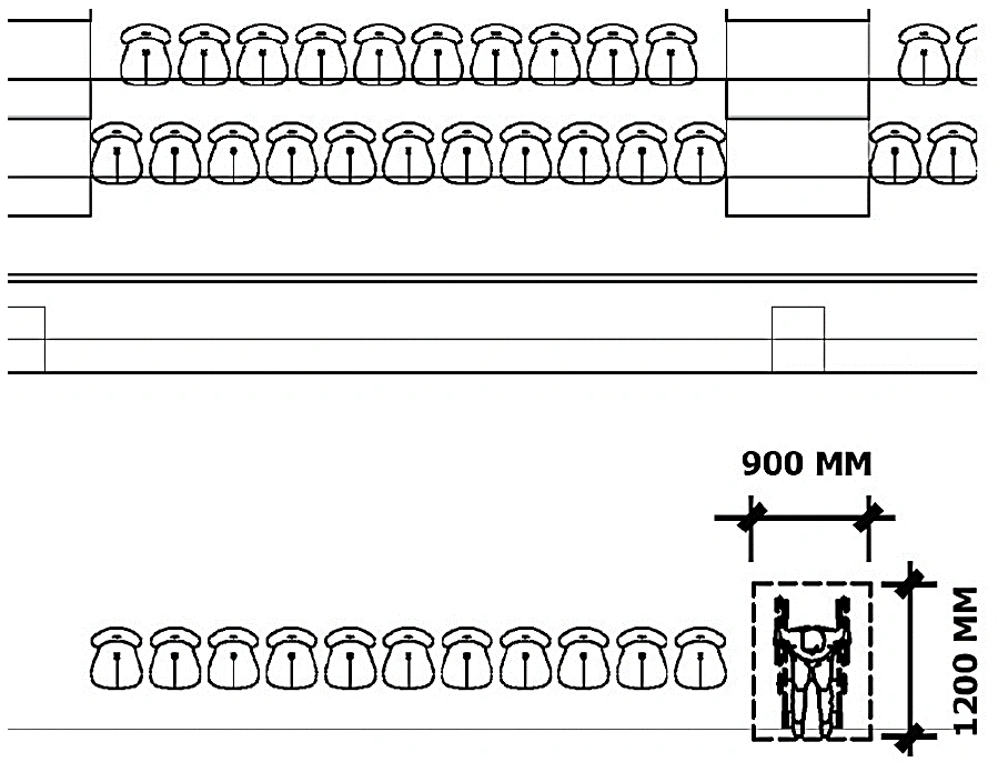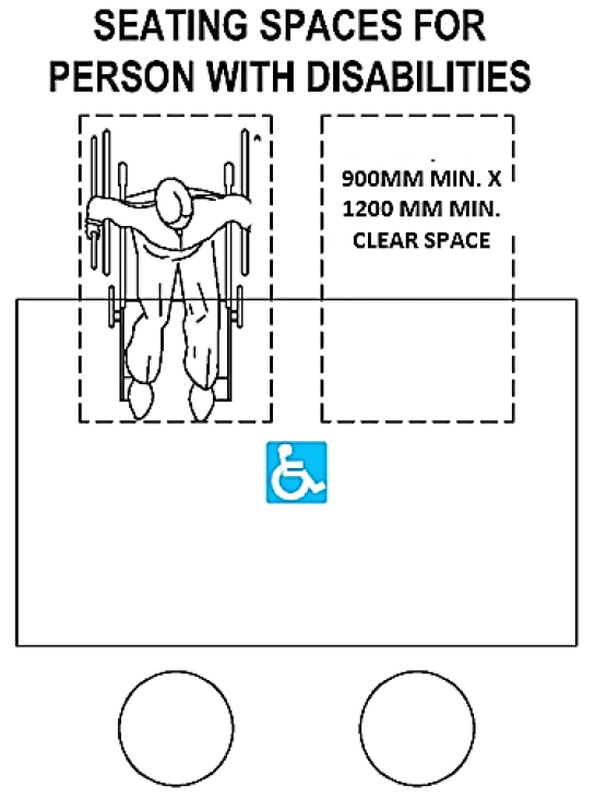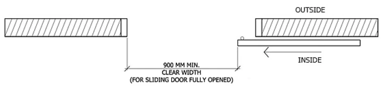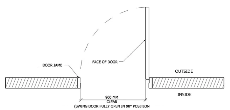 6. The minimum clear space required to accommodate (1) wheelchair and (1) occupant is 900 mm in width.