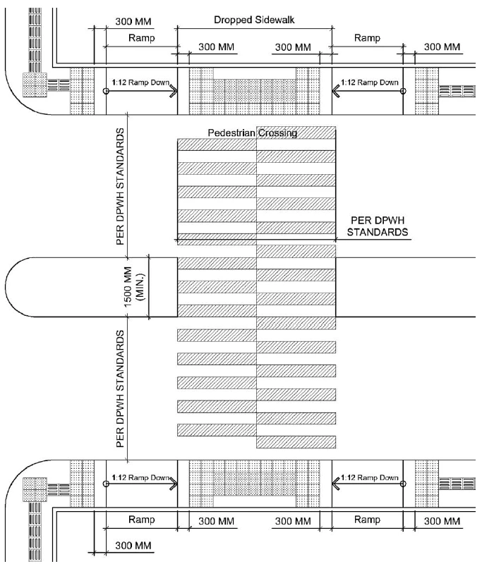 1. Streets, highways, and transport-related structures to be constructed Streets, highways, and transport-related structures shall be provided with the following barrier-free facilities and accessibility features at every pedestrian crossing: ramps and other accessible features in buildings of the sectoral offices and attached agencies of DOTr; transportation terminals and passenger waiting areas for the use of persons with disabilities;
