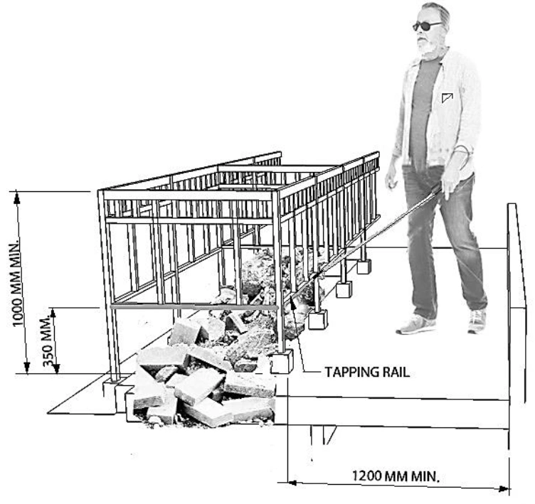 Area of Refuge – An area which has direct access to an exit, separated from the general floor area by a fire separation having a fire-resistance rating at least equal to that required for an exit that is smoke protected and served by an exit or a fireman’s elevator. It is an area where persons with disabilities who are unable to use the stairs may remain temporarily in safety to await further instructions or assistance during emergency evacuation. It shall have a minimum space of 900 mm X 1200 mm per non-ambulant person with disability, with a minimum of 2 spaces.