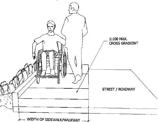 Dropped sidewalks – the lower portion of the sidewalk adjacent to at least one accessible ramp and the street gutter.