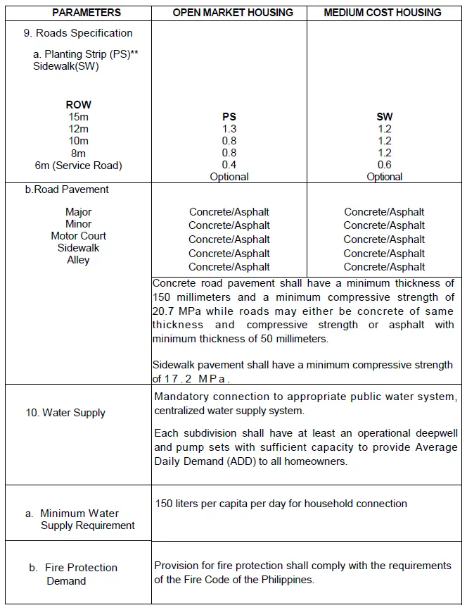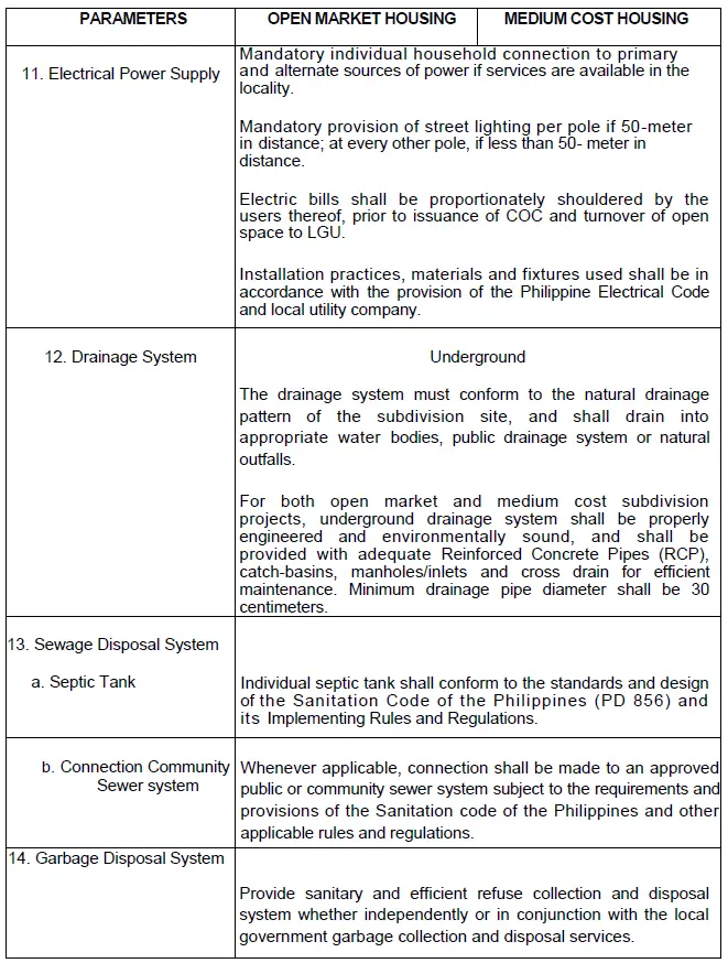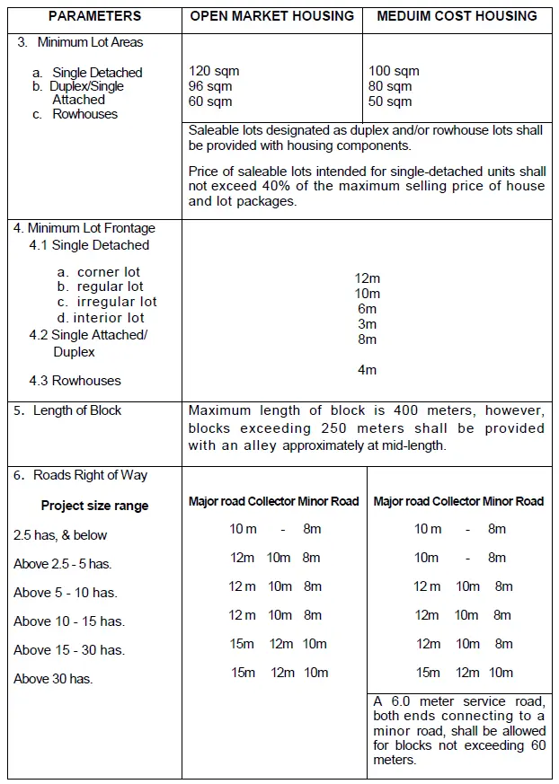 Residential subdivision projects shall conform with the following minimum design standards, applicable local government units’ (LGU) zoning ordinances as well as pertinent provisions of the National Building Code if project is with housing component: