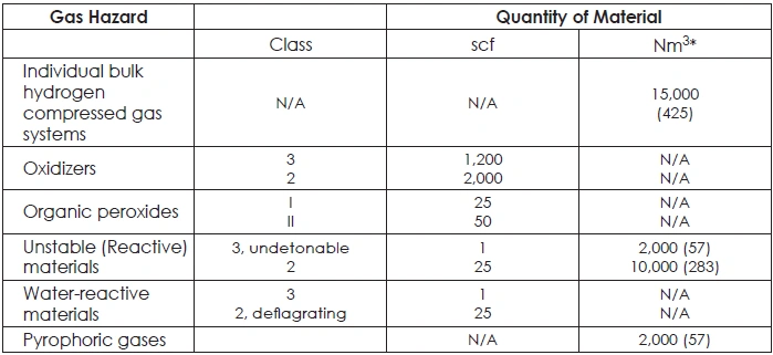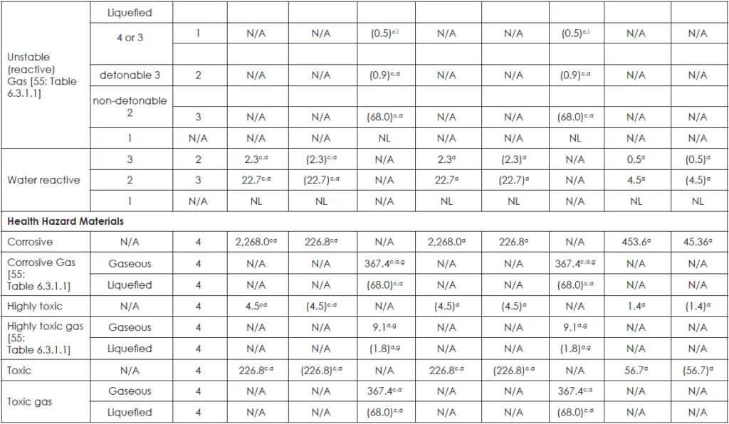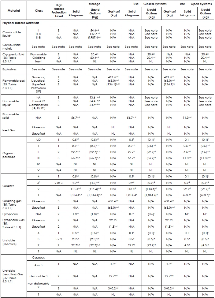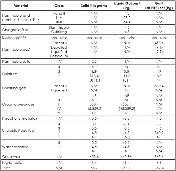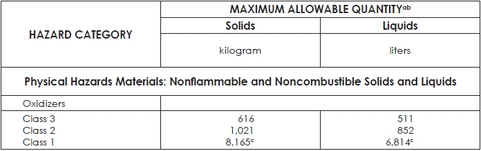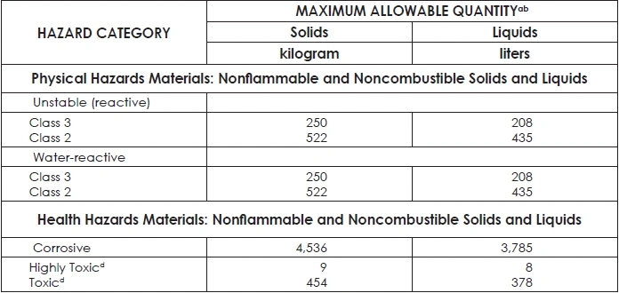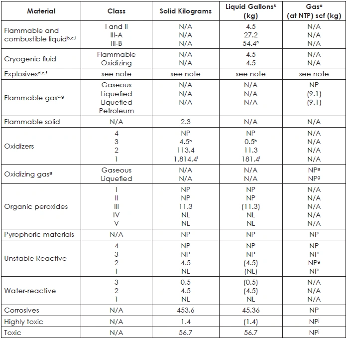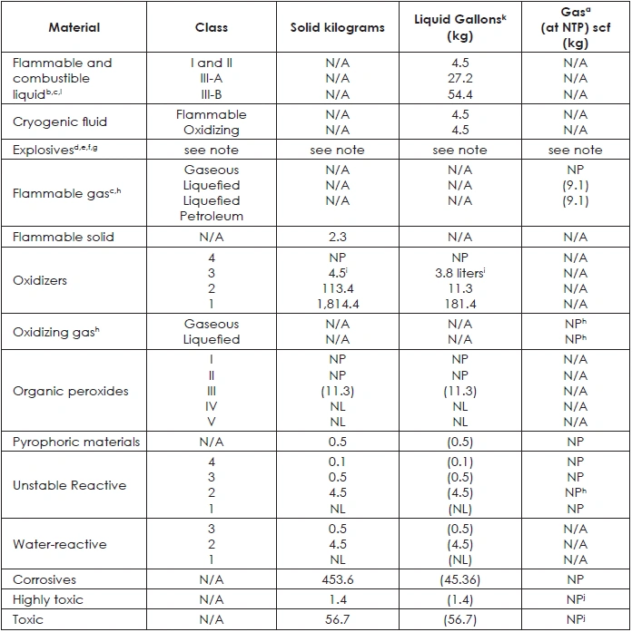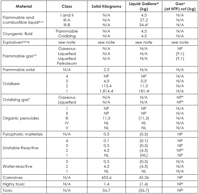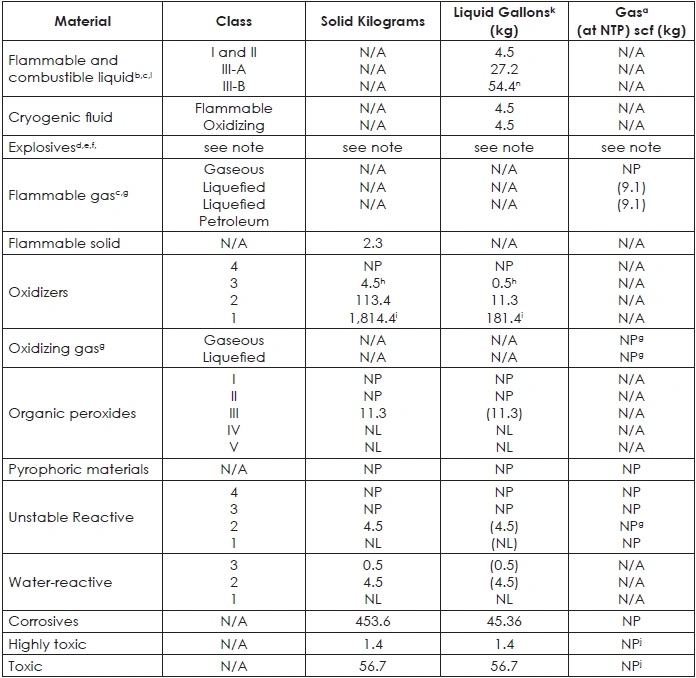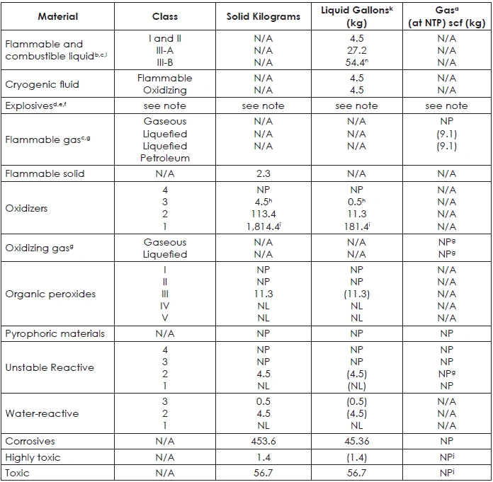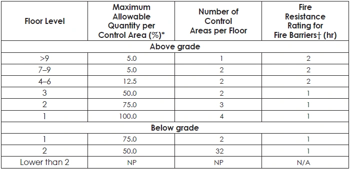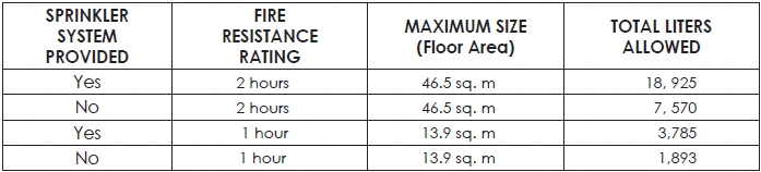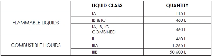 TABLE 42: MAXIMUM ALLOWABLE QUANTITY OF FLAMMABLE AND COMBUSTIBLE LIQUIDS PER CONTROL AREA