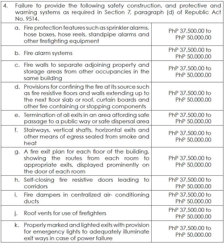 - All buildings, facilities or structures and their premises, erected or constructed before and after the effectivity hereof;