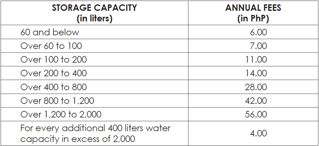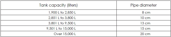 TABLE 43: DIAMETER OF BOTTOM DRAINPIPES BY TANK CAPACITY