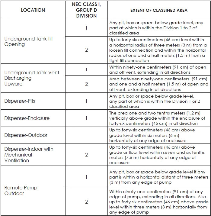 TABLE 37: ELECTRICAL INSTALLATIONS IN CNG SERVICE STATIONS