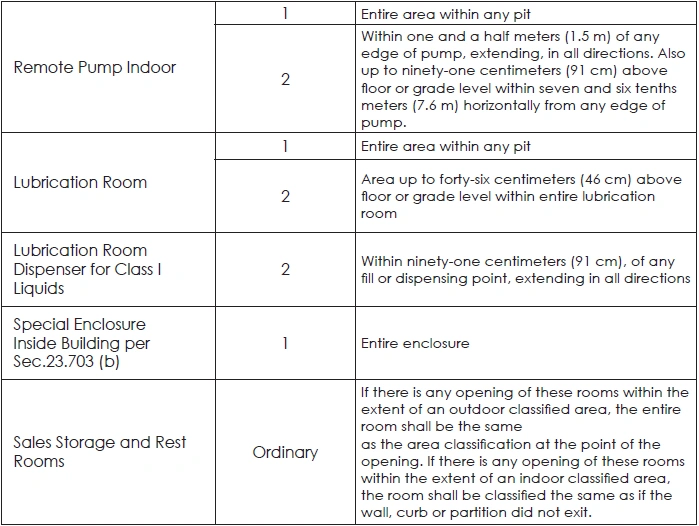 (1)The superscript (1) – prescribed the installation of combustible gas detector and alarm system to monitor and provide warnings for the explosive level of the confined combustible vapors.