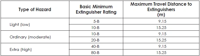 TABLE 41: CLEARANCE REQUIRED FROM EXHAUST DUCTS AND UNPROTECTED COMBUSTIBLE CONSTRUCTION FOR SPRAY BOOTHS, BY TYPE OF PROTECTION USED