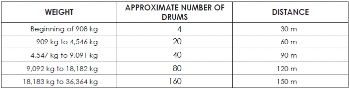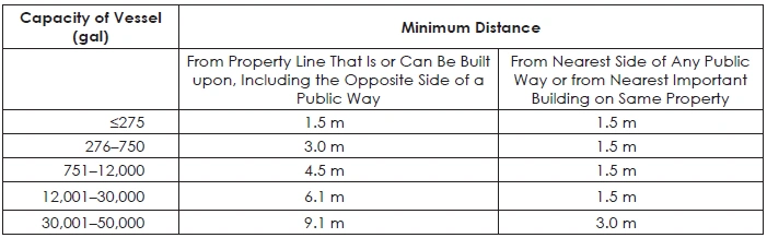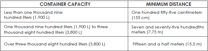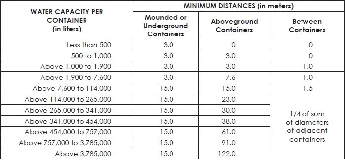 TABLE 36: MINIMUM DISTANCES OF LPG CONTAINERS OUTSIDE BUILDINGS, BY WATER CAPACITY