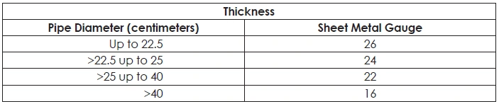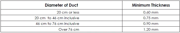 TABLE 40: MINIMUM THICKNESS OF SPRAY BOOTH EXHAUST DUCTS, BY DIAMETER