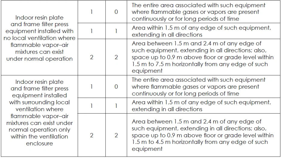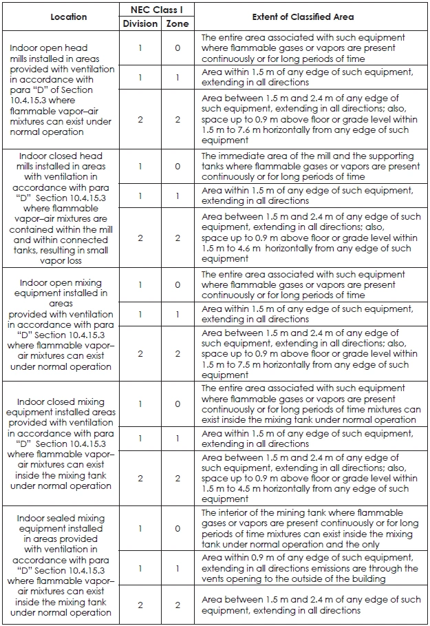 TABLE 49: ELECTRICAL AREA CLASSIFICATION SPECIFIC TO ORGANIC COATINGS MANUFACTURE