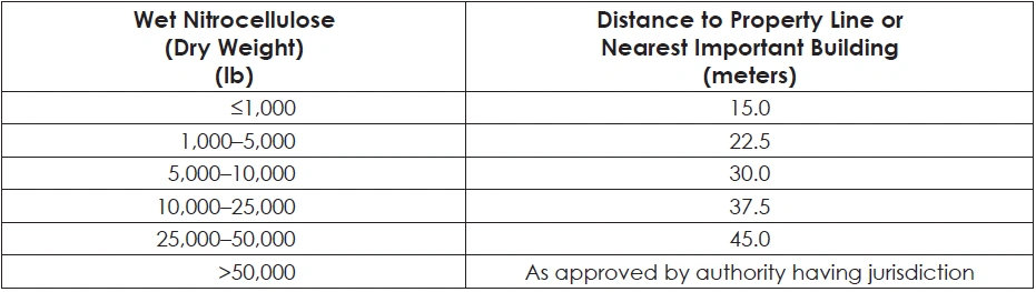 TABLE 50: SEPARATION DISTANCES FOR NITROCELLULOSE STORAGE