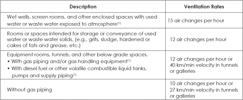 TABLE 51: MINIMUM VENTILATION RATES IN WATER AND WASTE WATER TREATMENT PLANTS
