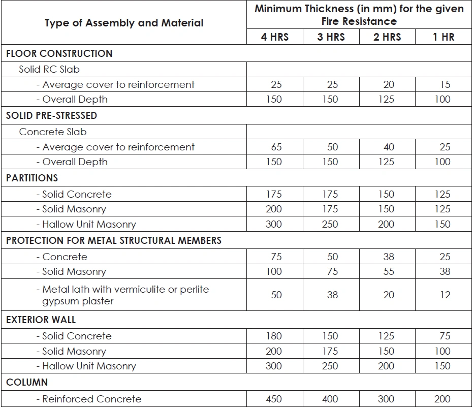 TABLE 52: FIRE RESISTIVE STANDARDS